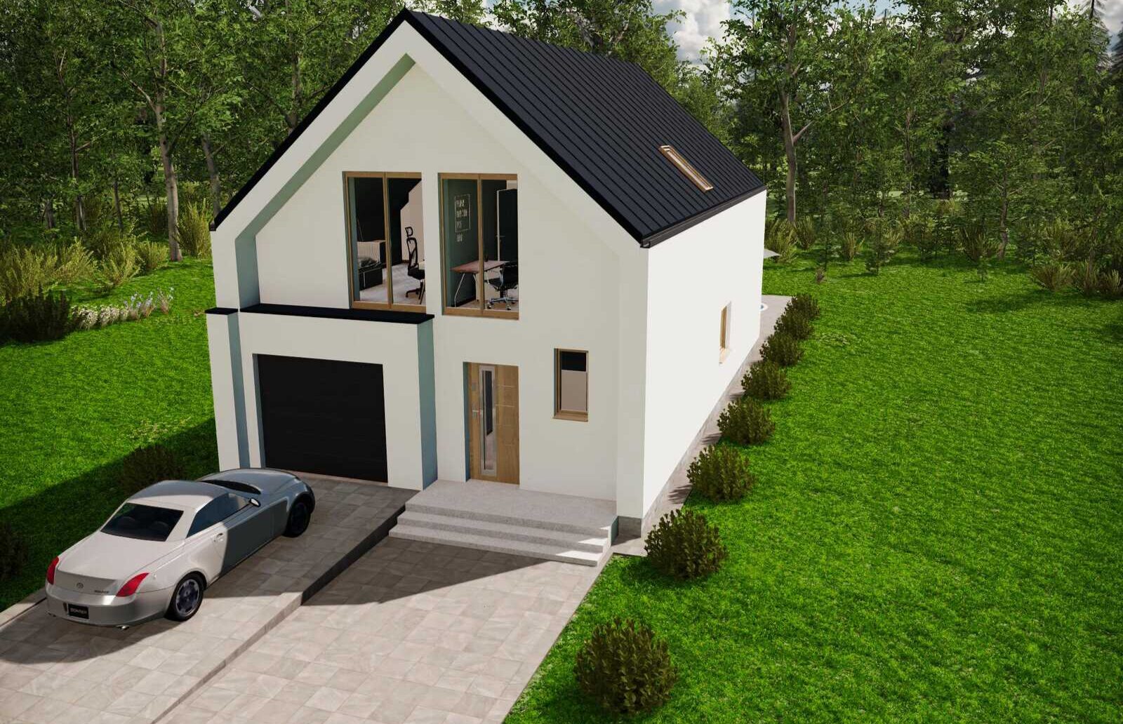ist ein modernes scheunenartiges Hausprojekt mit einer in den Baukörper integrierten Garage.