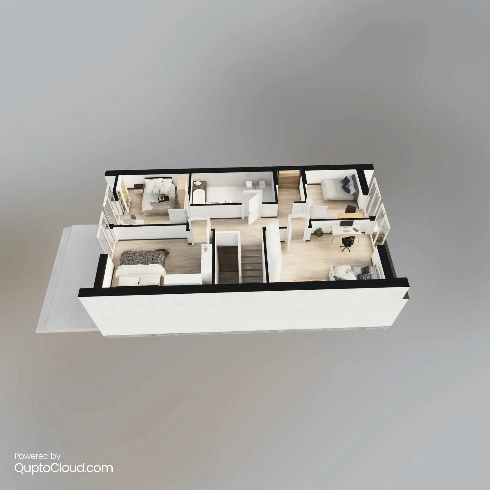 Im ersten Stock befinden sich bis zu 4 Schlafzimmer, ein Ankleidezimmer und ein Badezimmer.